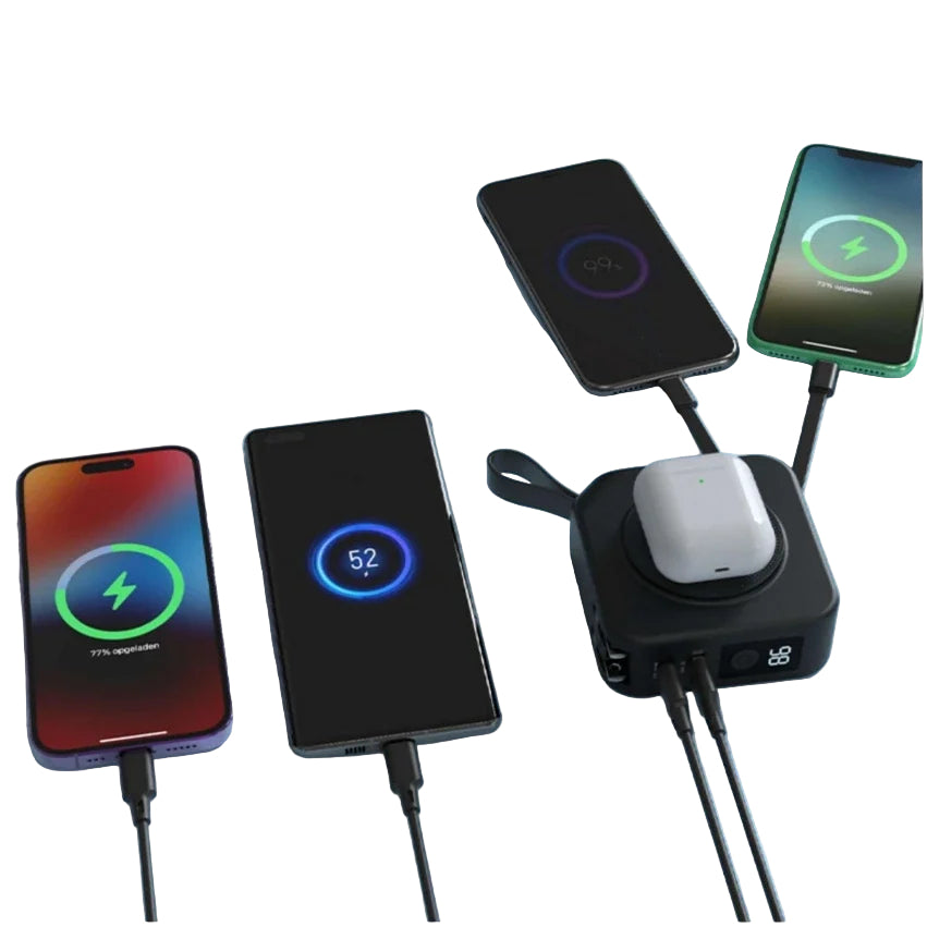 המטען הנייד החכם הזה מספק טעינה מהירה במיוחד, וכולל חיבור מגנטי אלחוטי שמתאים למכשירי אייפון תומכים. הוא מגיע עם כבל מובנה וראש טעינה, כך שלא תצטרכו להסתובב עם מטענים נפרדים – הכול כלול בעיצוב אחד קומפקטי